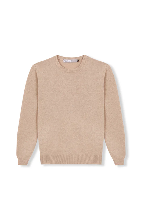 Jersey de punto liso con cuello redondo, confeccionado artesanalmente con 100% lana merino italiana. Una prenda esencial que combina calidez natural, suavidad excepcional y diseño minimalista.